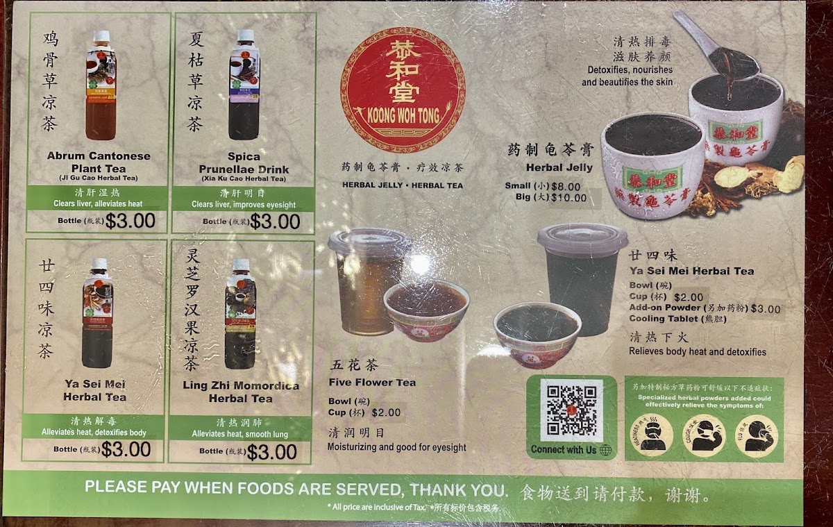The menu at Koong Woh Tong - The Bencoolen offers a simple yet thoughtful selection centered around traditional herbal treats. It’s a place to enjoy comforting drinks and light desserts that gently refresh and soothe, perfectly suited for a mid-day pause or a relaxing break during a busy day.